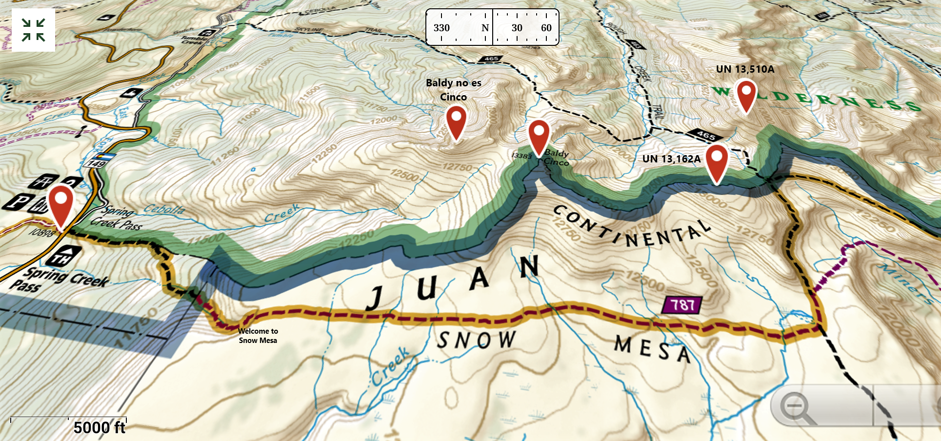 Peaks: “Baldy No Es Cinco” (13,313′), Baldy Cinco (13,383′), UN 13,162 A, UN 13,510 A